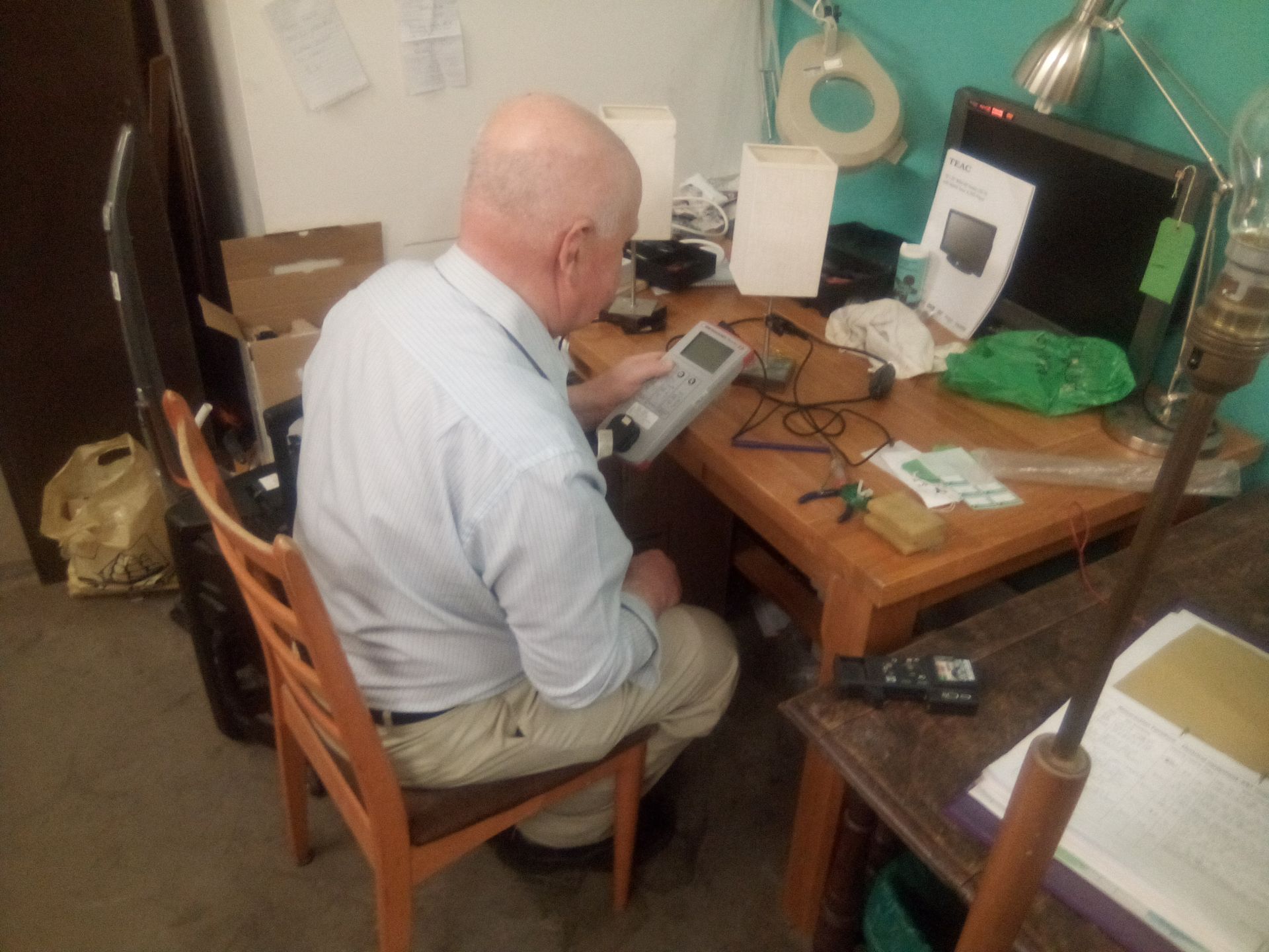 My name is Mike and I'm part of the workshop team repairing furniture and goods donated to the shop. I'm a retired Design Engineer and keen amateur woodworker who likes to get his hands dirty! At the back of the shop we have a good sized workshop equipped for furniture restoration as well as undertaking the safety testing of electrical items. Work ranges from tightening screws on flat-packed furniture to fitting new plugs on table lamps. I particularly enjoy working on vintage and antique furniture. It's very satisfying to see things recycled instead of ending up in landfill.
